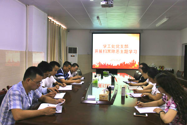 5月27日上午,学工处党支部组织全体党员在行政楼218会议室开展廉政纪律警示教育和扫黑除恶专题教育。党支部书记裴以明主持教育活动。