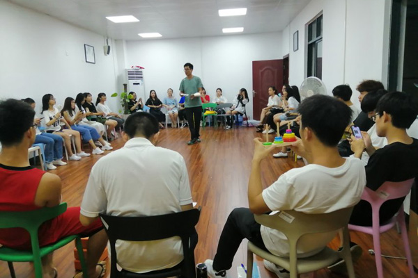 活动通过团体心理游戏、经验分享等多种形式进行,沙龙一直洋溢着欢快的青春气息。程族桁老师组织同学们进行一个“井中人生”的心理游戏,同学们在游戏中相互协作,挑战自我,挖掘自身潜力,增进了对彼此的了解,现场气氛热烈;程老师顺势提出大学生学习生活中常见的心理困扰,同学们讲述平常所遇到的心理困境与挫折,大家积极参与讨论,集思广益,共同寻求解决方案。