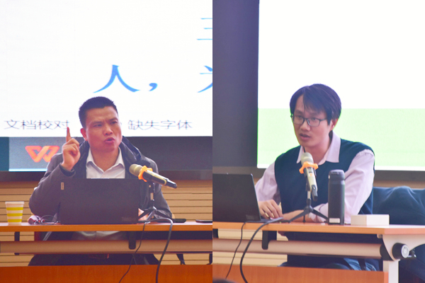 学(研)工部部长、学工处处长裴以明(左)、大学生心理健康教育中心主任程族桁(右)讲座中