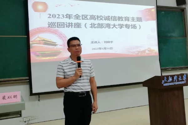 为进一步提高学生诚信意识,增强资助育人成效,6月16日下午,2023年全区高校“诚信教育主题月”巡回讲座在我校12号教学楼104报告厅举行。