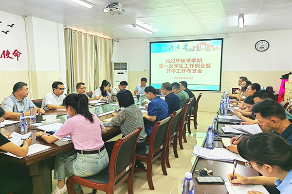 9月2日,2023年秋季学期第一次学生工作例会暨学生工作布置会在办公楼218会议室召开。学校副校长马秀明出席会议,相关职能部门及各二级学院分管学生工作领导参加。会议由学工部(处)副部(处)长劳昌锦主持。