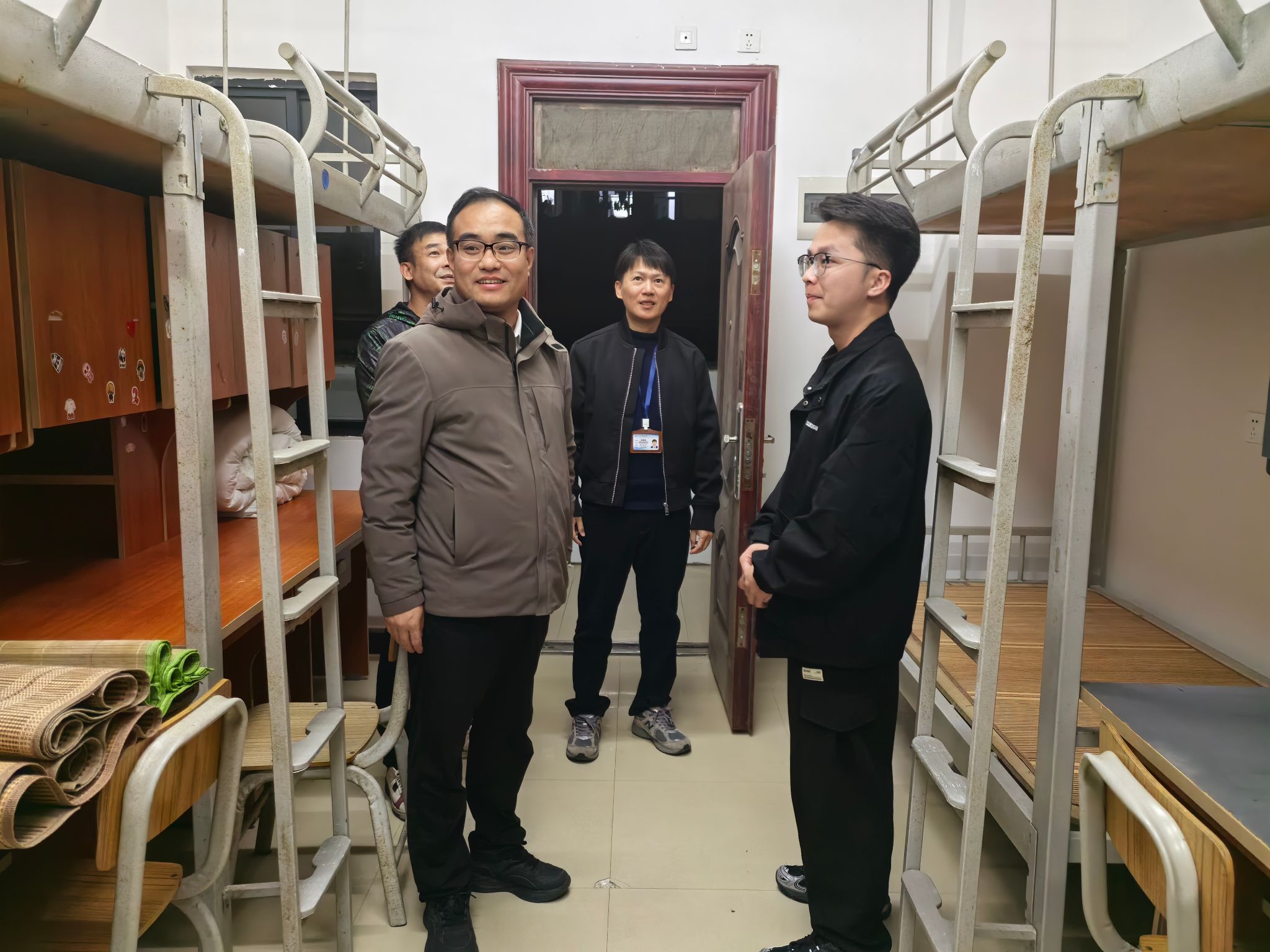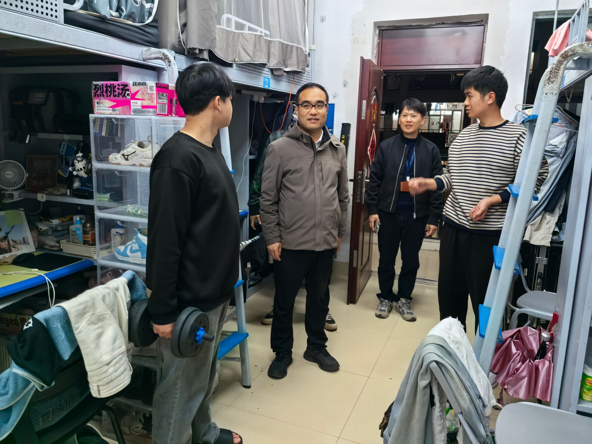 随后,马秀明副校长看望入住学生宿舍的社区辅导员玉智安老师,为坚守一线的辅导员送去暖心关怀与诚挚问候,对辅导员为学生成长付出的辛勤努力给予充分肯定。马秀明副校长强调,社区辅导员处在学生管理服务的最前沿,是学生心灵的呵护者、成长的引路人,希望大家继续保持高度的责任心,及时发现并化解学生们的问题,助力他们度过充实、美好的校园时光。