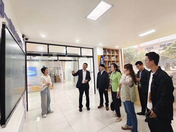 我校一行依次参观了桂林理工大学资助育人基地、“一站式”学生社区、辅导员工作室,详细了解了各平台的建设情况、功能布局和运行模式。在资助育人基地,他们对学校“四位一体”的发展型资助体系和丰富的育人成果表示赞赏;在“一站式”学生社区,对共享厨房、24小时自习室等贴近学生需求的功能空间以及线上便捷服务模式产生了浓厚兴趣;在辅导员工作室,双方就工作室的建设方向、团队构成和活动开展进行了深入探讨。