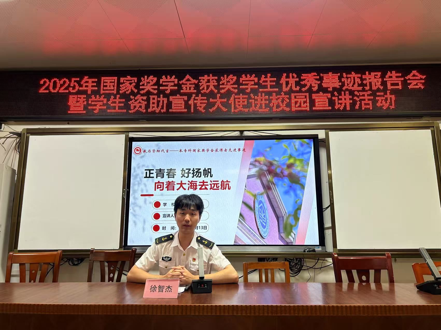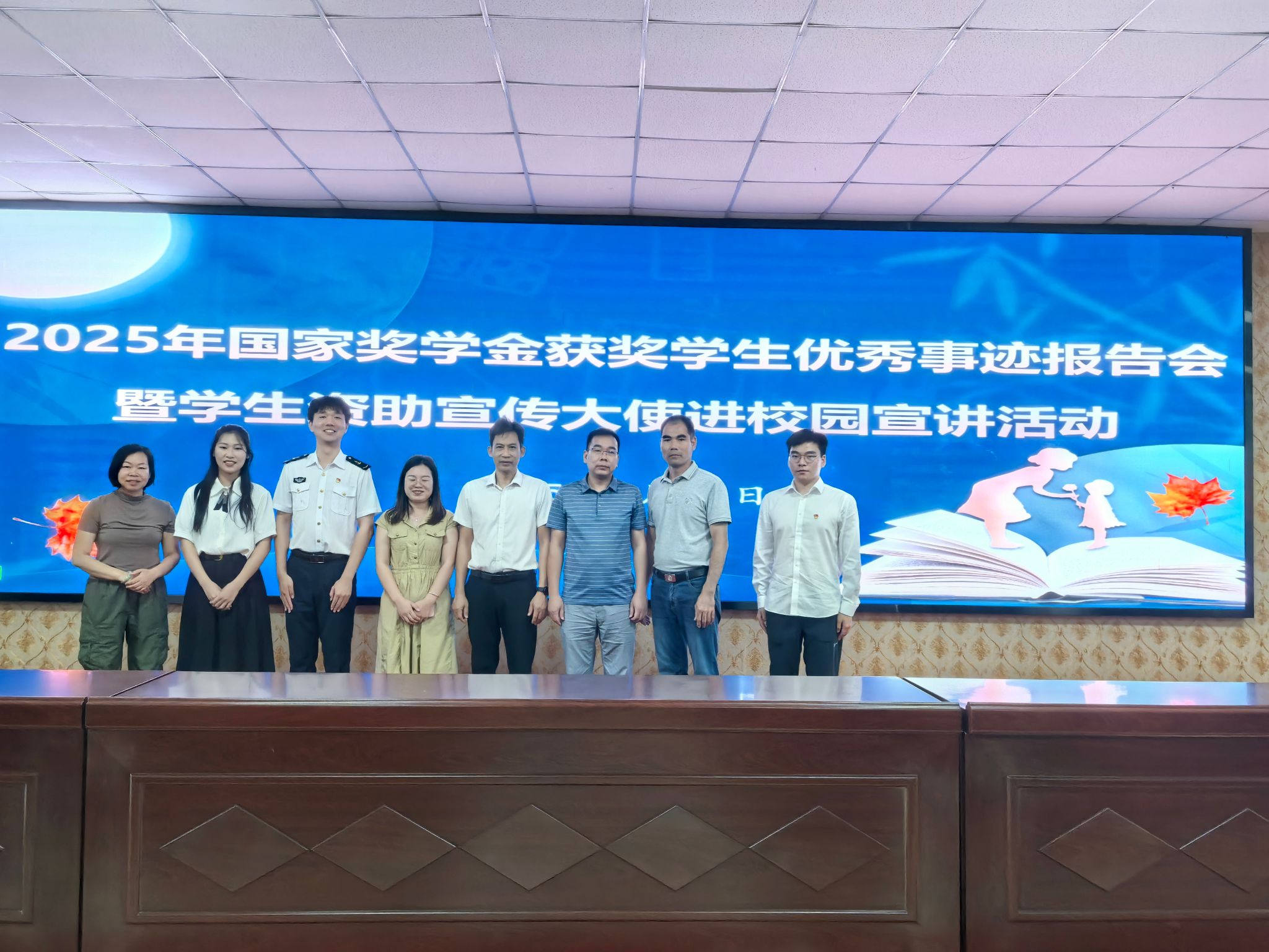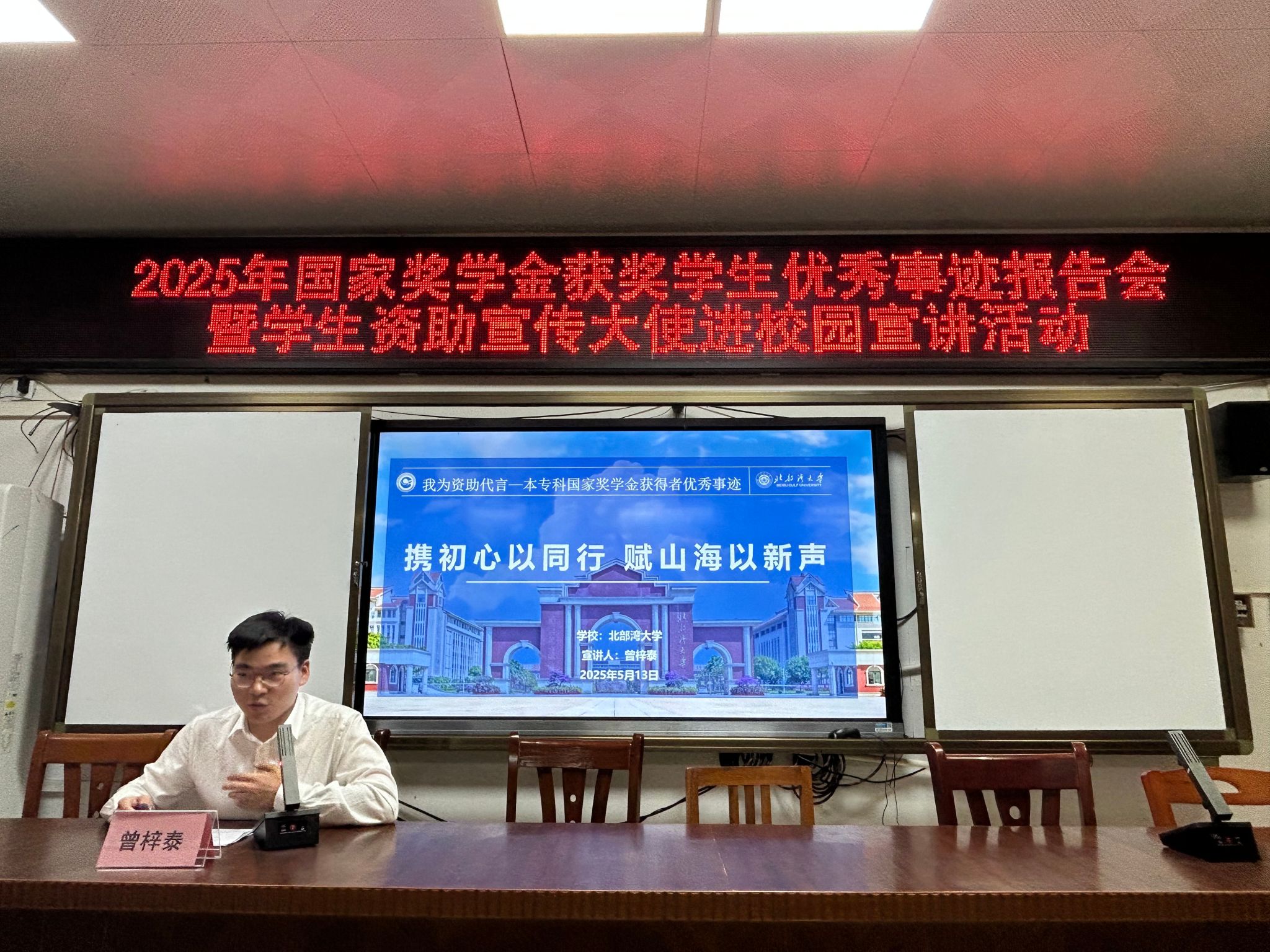 5月13日,由我校滕小玉、曾梓泰、徐智杰三位同学组成的宣讲小组赴合浦县中等职业技术学院和合浦县第四中学开展2025年国家奖学金获奖学生优秀事迹报告会暨学生资助宣传大使进校园宣讲活动。