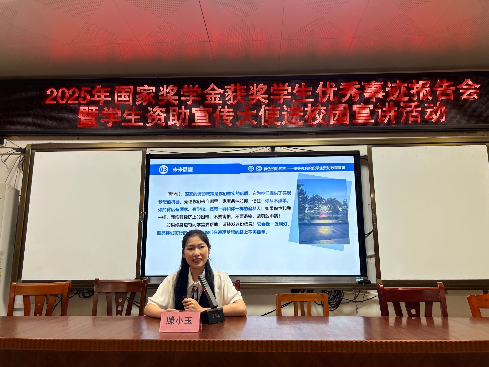 学生资助宣传大使滕小玉从自身经历出发,深入讲解国家资助政策,帮助学生全面了解资助体系,让学生更加直观地了解资助政策如何帮助家庭经济困难学生解决学习和生活中的困难。