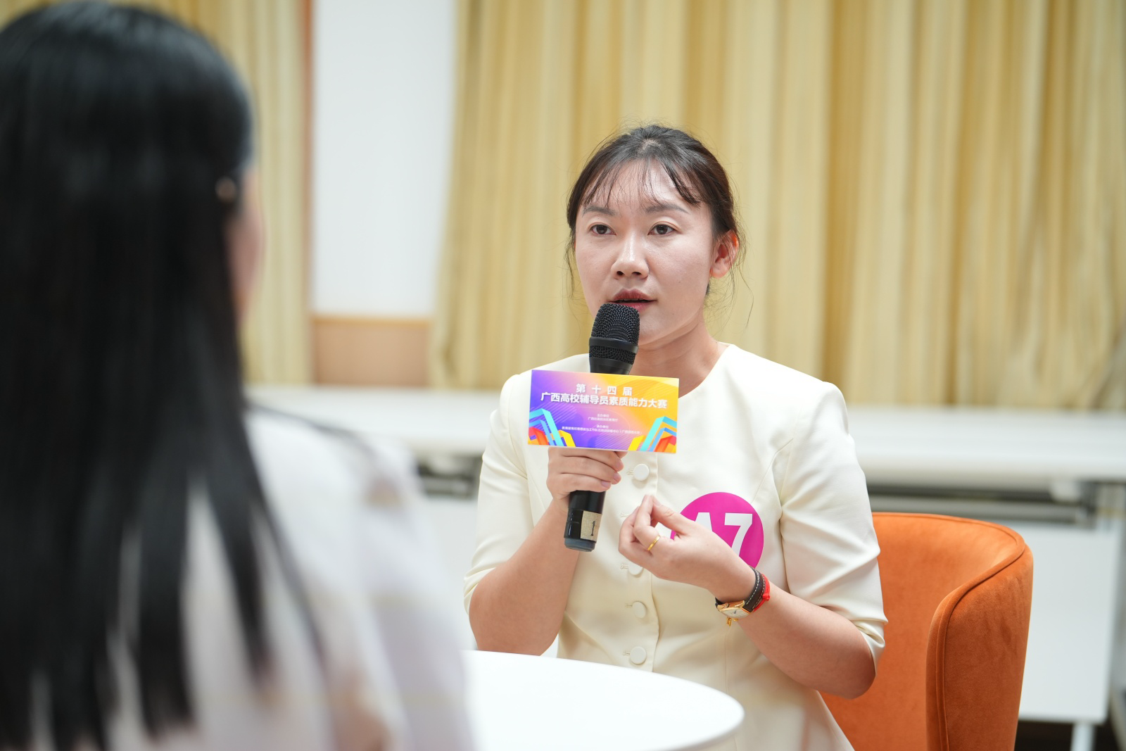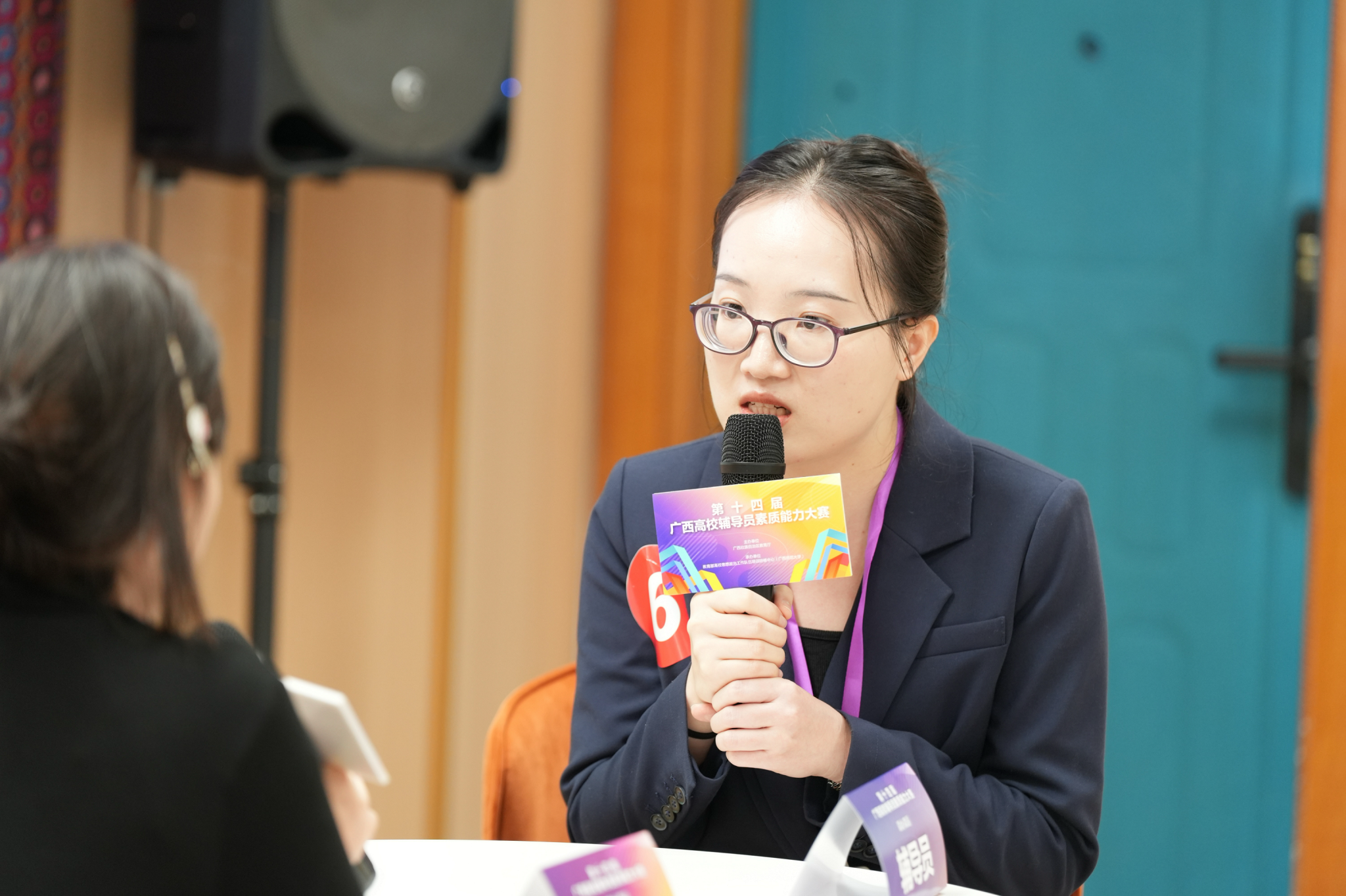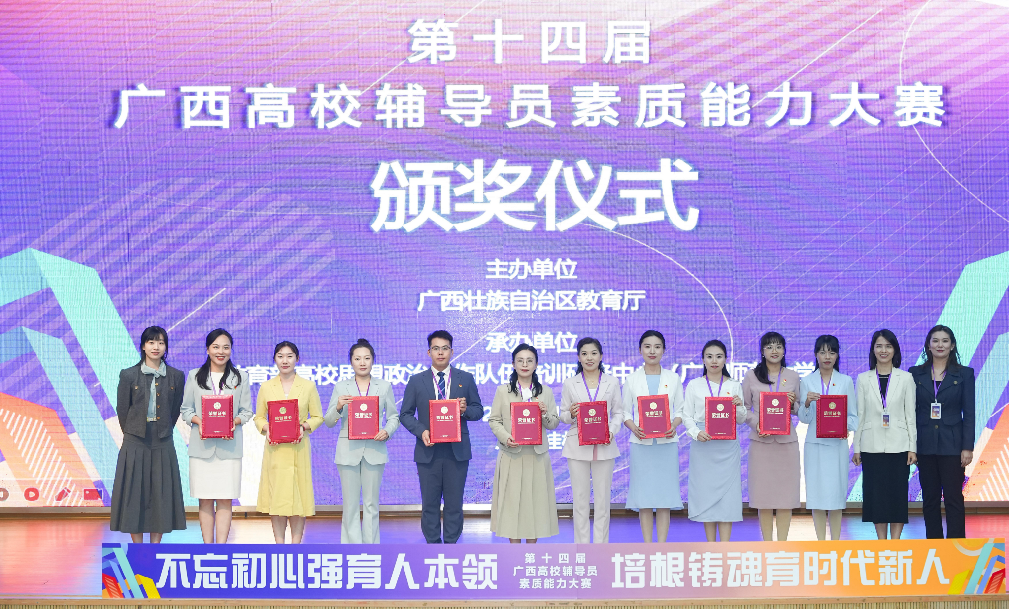 本次大赛由广西壮族自治区教育厅主办,教育部高校思想政治工作队伍培训研修中心(广西师范大学)承办,大赛设置“赋能成长”与“实战演练”两大单元,涵盖赋能微课、基础知识测试、学情分析、案例研讨和谈心谈话五个环节,全面考察辅导员的理论素养、政策水平、应急处置能力及育人实践能力。比赛中,我校两位辅导员沉着应对、思路清晰、表达专业,斩获佳绩,充分展现了过硬的综合素质与良好的精神风貌。
