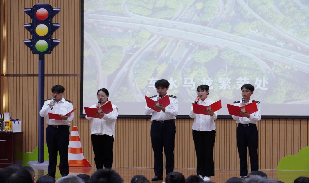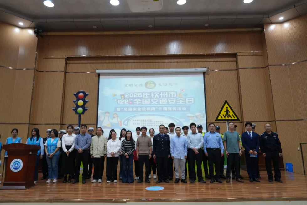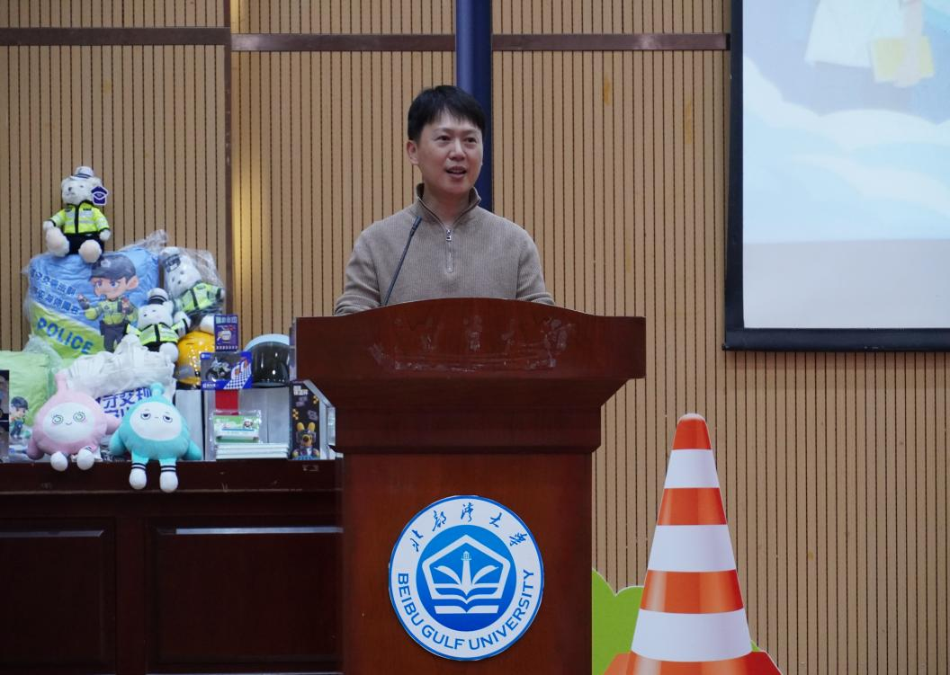 为深入贯彻落实第十四个全国交通安全日 “文明交通、礼行天下” 的主题要求,进一步筑牢校园道路交通安全防线,提升广大师生的安全意识和文明素养,2025 年 12 月 2 日下午,由钦州市文明办、钦州市公安局交警支队主办,北部湾大学党委学生工作部(处)部、团委和保卫处联合承办的 “交通安全进校园” 主题宣传活动在北部湾大学4号教学楼101报告厅成功举行。活动以警校联动、寓教于乐的创新形式,推动交通安全理念深度融入校园,为师生出行安全筑牢坚实屏障。500余名师生与交警们齐聚一堂,沉浸式学习交通安全知识,筑牢出行安全防线。