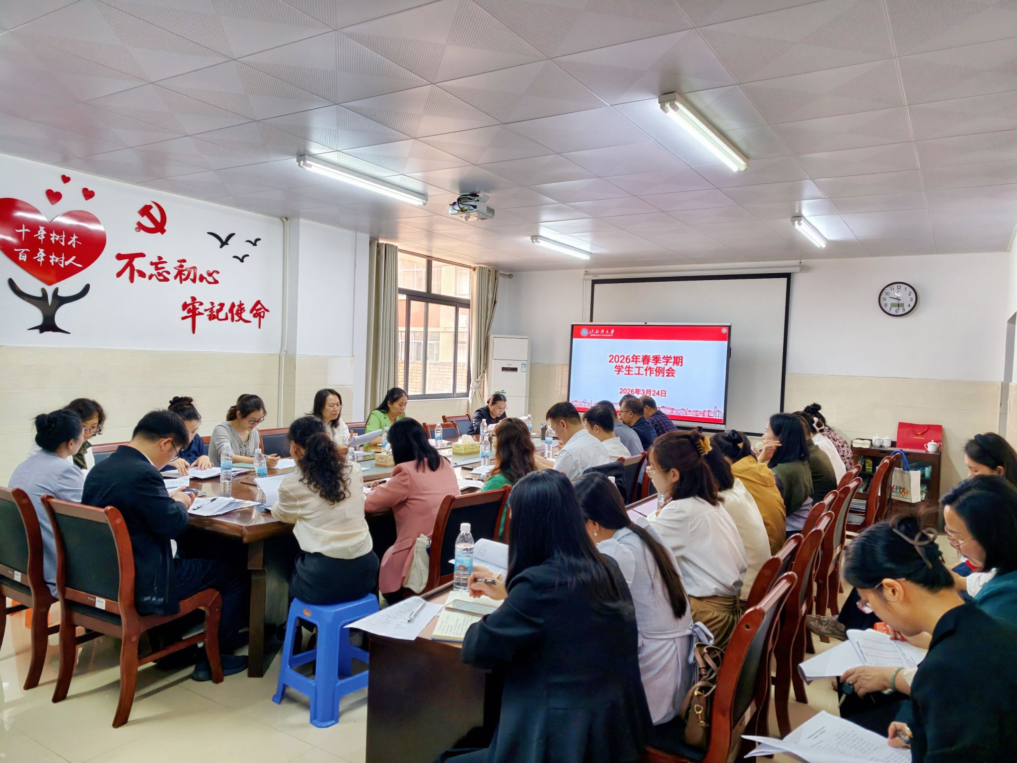 3月24日上午,学工处在办公楼218会议室召开2026年春季学期第五周学生工作例会。学工处领导、各二级学院分管学生工作领导及学工办主任参加会议,会议围绕品牌活动建设、学生安全教育、就业工作推进等重点任务进行部署。